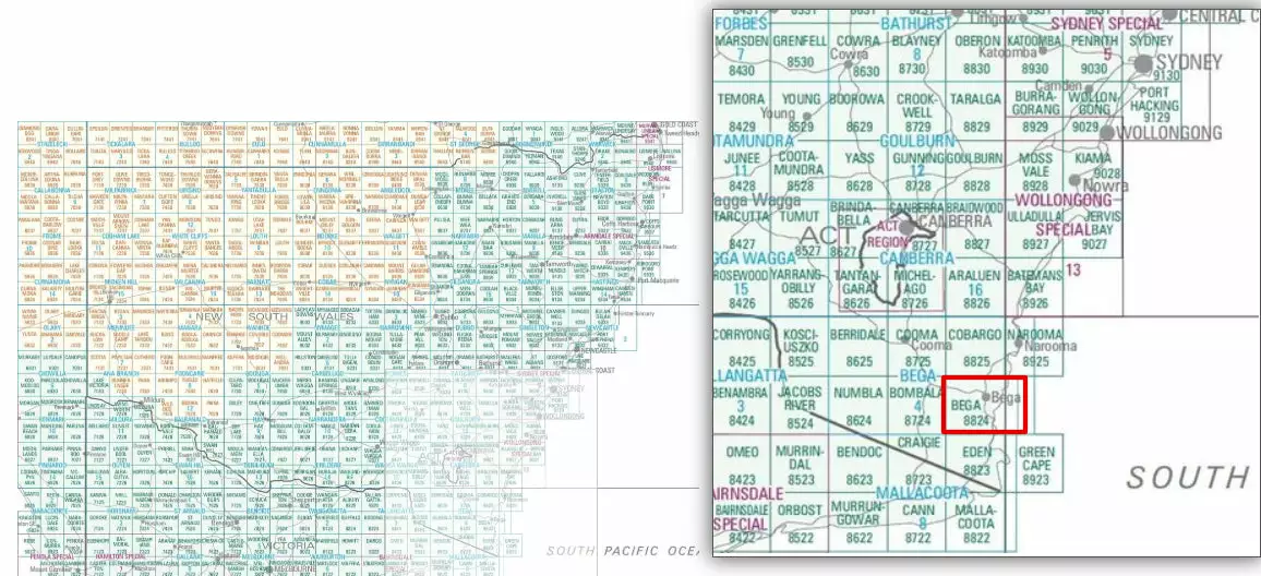 1:100,000 Scale Topographic Map by Natmap (Australian Government). Detail at 1cm to 1km. Land features, watercourses roads and tracks.