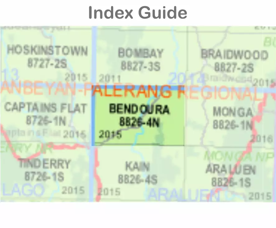 The Bendoura 8826-4-N 1:25,000 scale New South Wales topographic map shows contours, streams, roads, tracks, buildings, place names, points of interest, vegetation, selected administrative boundaries and much more.