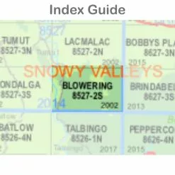 The Blowering 8527-2-S 1:25,000 scale New South Wales topographic map shows contours, streams, roads, tracks, buildings, place names, points of interest, vegetation, selected administrative boundaries and much more.