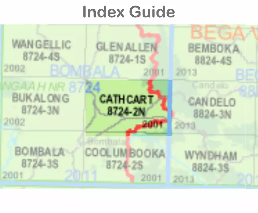 The Cathcart 8724-2-N 1:25,000 scale New South Wales topographic map shows contours, streams, roads, tracks, buildings, place names, points of interest, vegetation, selected administrative boundaries and much more.
