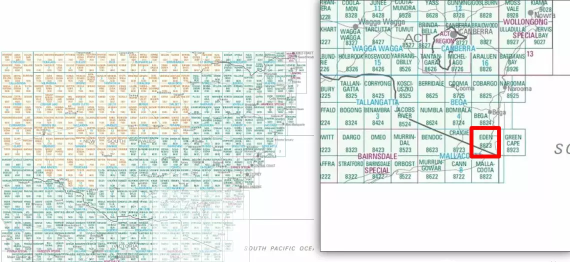 1:100,000 Scale Topographic Map by Natmap (Australian Government). Detail at 1cm to 1km. Land features, watercourses roads and tracks.