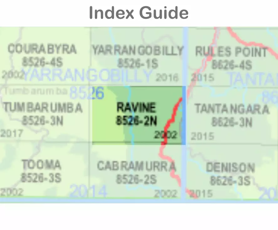 The Ravine 8526-2-N 1:25,000 scale New South Wales topographic map shows contours, streams, roads, tracks, buildings, place names, points of interest, vegetation, selected administrative boundaries and much more.