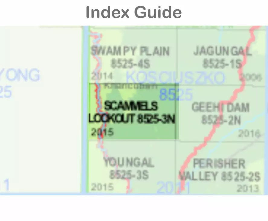 The Scammels Lookout 8525-3-N 1:25,000 scale New South Wales topographic map shows contours, streams, roads, tracks, buildings, place names, points of interest, vegetation, selected administrative boundaries and much more.