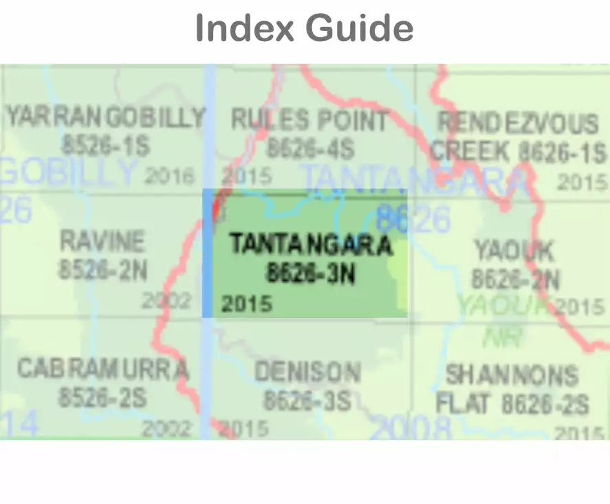 The Tantangara 8626-3-N 1:25,000 scale New South Wales topographic map shows contours, streams, roads, tracks, buildings, place names, points of interest, vegetation, selected administrative boundaries and much more.