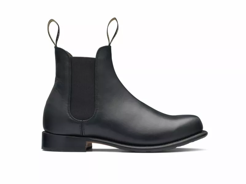- Black premium leather Chelsea boot with black elastic gusset