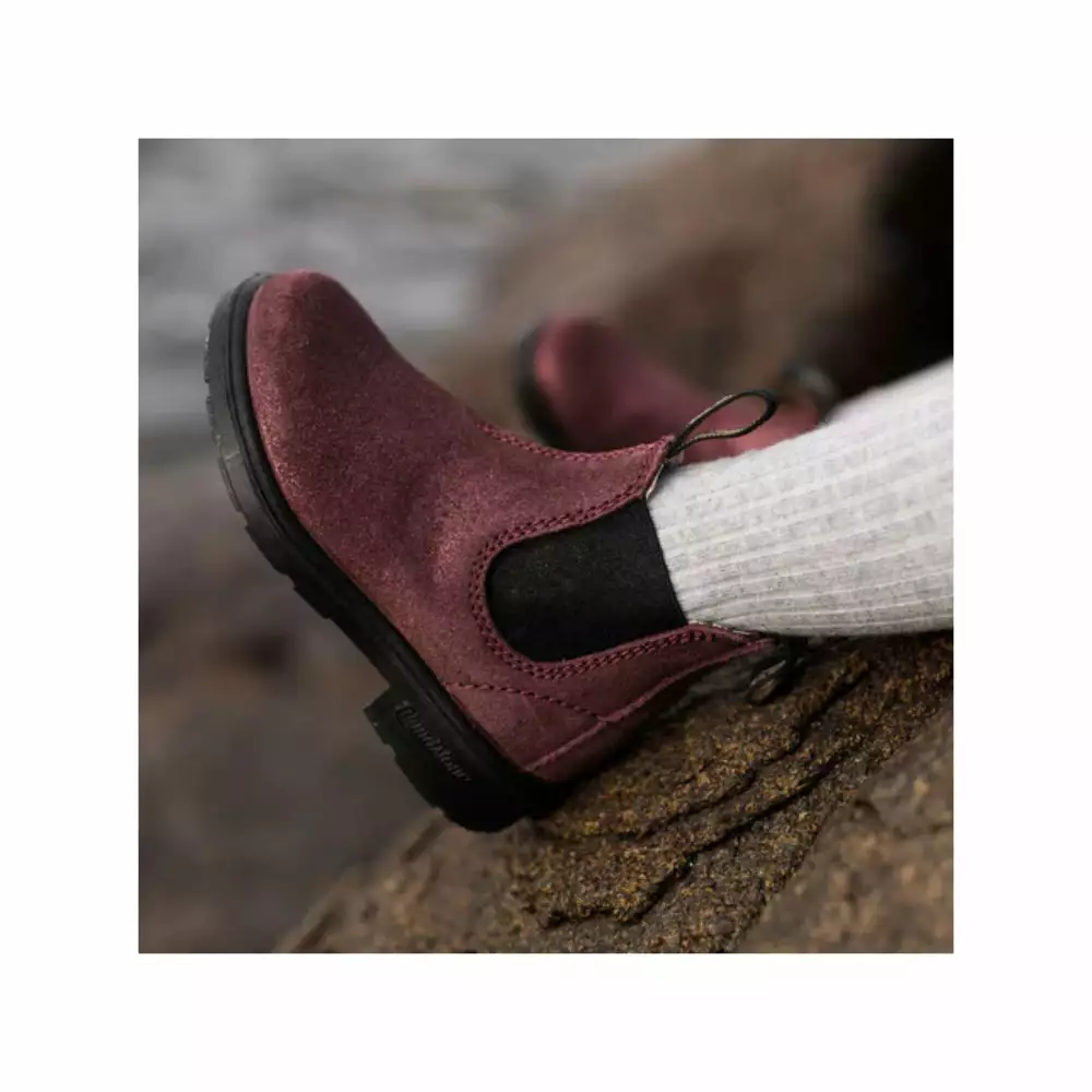 Blundstone 2090 Kids boots in Rose Pink. Fun on the outside, serious dry comfort on the inside. This is a boot kids love to wear. Pull-on easy. No laces to trip over, tie or replace. Over-the-ankle support. Removable footbeds for months more wear. Unisex sizing.
