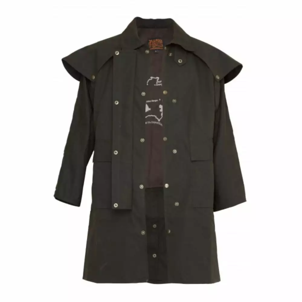 A very practical working coat, the Balranald allows increased movement and flexibility. Constructed from our popular Dritec™ heavyweight Oilskin cotton, this coat is extremely durable and waterproof. Features include our signature cape, deep front pockets, reinforced elbow patches, back vent and the option to attach an Oilskin hood and Sherpa lining.