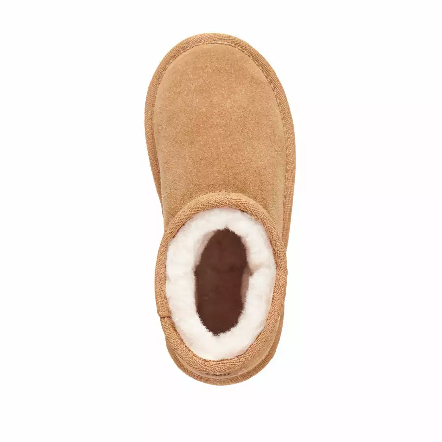 Comfortable and functional, the original Wallaby Mini suede boot for children is a classic year round ankle-height boot. Made with luxury natural suede and cosy Australian Merino wool, this cute and classic boot for kids ensures warmth and comfort for little toes. But it’s also ideal for wearing in warmer summer weather, since our natural materials are really breathable, meaning it keeps children’s feet cool and dry. And since these boots easily slip on and off, they’re ideal for getting the kids dressed on busy mornings, and great for travelling. A dual density outsole, with extra cushion EVA, provides optimum traction and grip whilst the moulded heel provides a superior fit and comfort. The materials used in the creation of the Wallaby Mini boot for kids are natural and also Woolmark accredited.