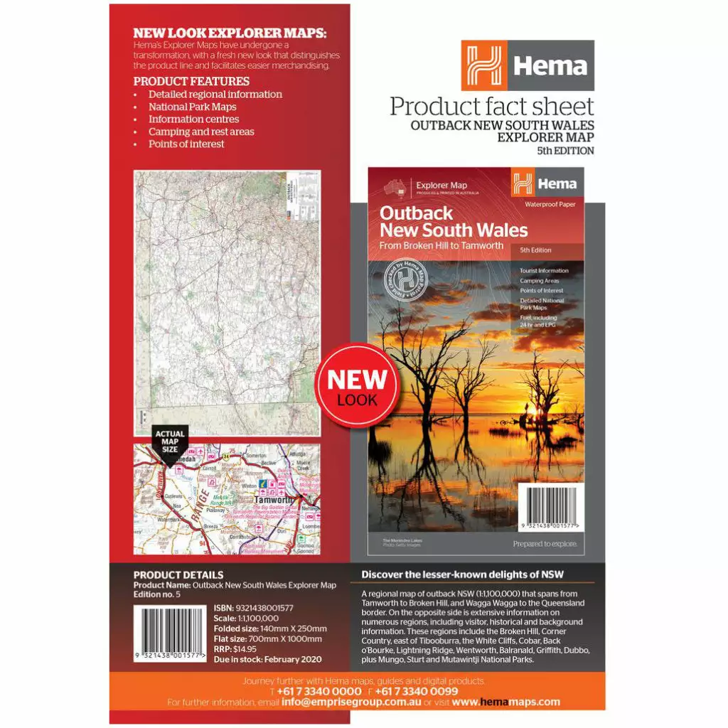 A regional map of outback NSW (1:1,100,000) that ranges from Tamworth in the east to Broken Hill in the west, as well as from Wagga Wagga in the south to past the Queensland border in the north. On the opposite side is extensive information on numerous regions, including visitor, historical and background information. Covered regions include the Broken Hill region, Corner Country, east of Tibooburra, the White Cliffs region, Cobar and surrounds, around Back o’Bourke, Lightning ridge and surrounds, Wentworth region, Balranald, Griffith region, Dubbo and surrounds, Kinchega National Park, Mungo National Park, Sturt National Park and Mutawintji National Park.