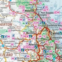 A touring map for the trip along the Savannah Way between Cairns and Broome at a scale of 1:2,200,000. The maps show 24-hour fuel, outback fuel and LPG as well as caravan parks, camping areas and rest areas. Popular national parks along the route are featured with detailed inset maps of Judbarra/Gregory, Purnululu, Kakadu and Boodjamulla. Also included are contact details for accredited information centres and useful lists of the facilities in national parks.