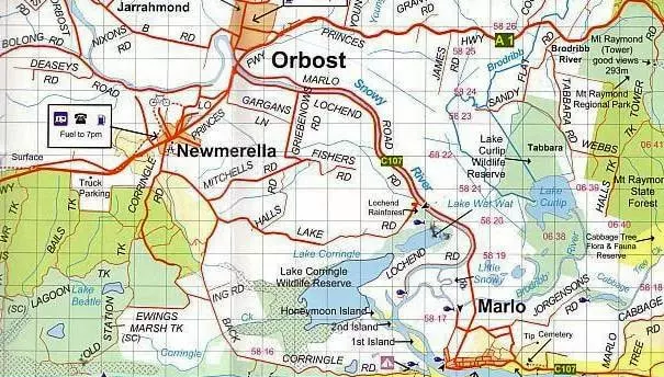 Features all parks, reserves, state forests, fishing spots etc. GPS mapping technology is used to plot all roads & tracks.