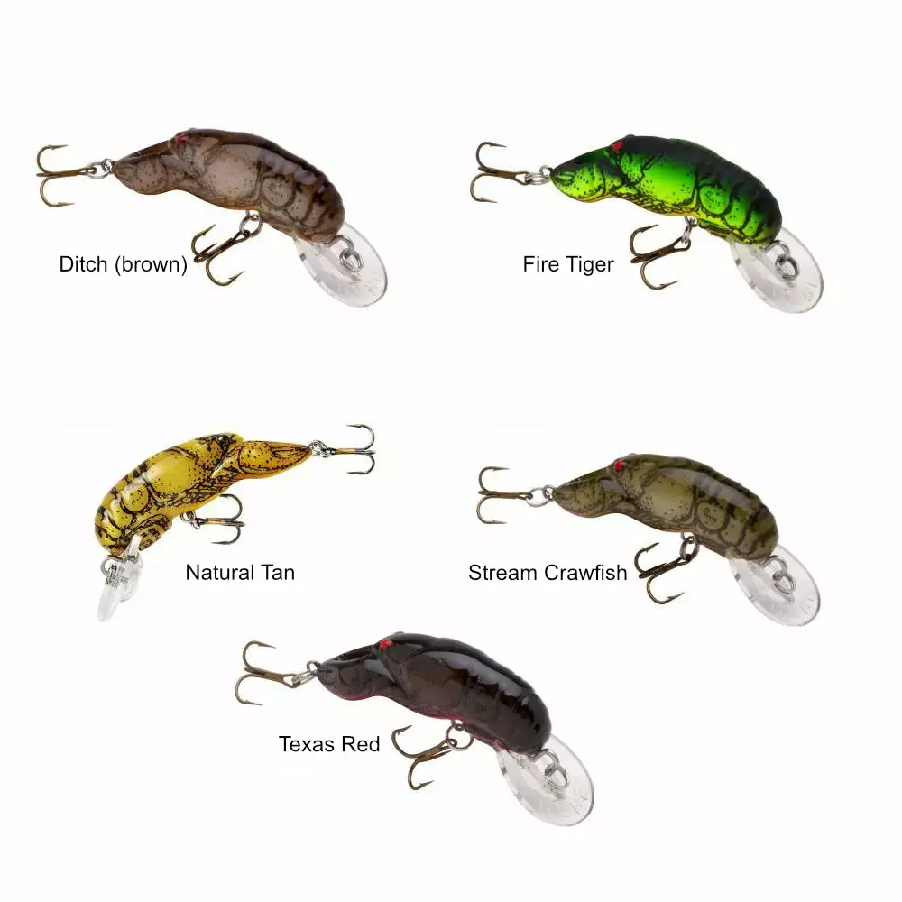 The ultralight Rebel Teeny Wee-Crawfish is one of the most popular fishing lures in the world – a standby for all anglers who walk stream banks or small lakes around the world. Its small, lifelike profile entices and catches bass, trout, panfish and more. The distinct pulsating action is irresistible and extremely effective in rivers and streams. Cast or troll this shallow-running crawfish bait and enjoy the true-running stability that catches fish.