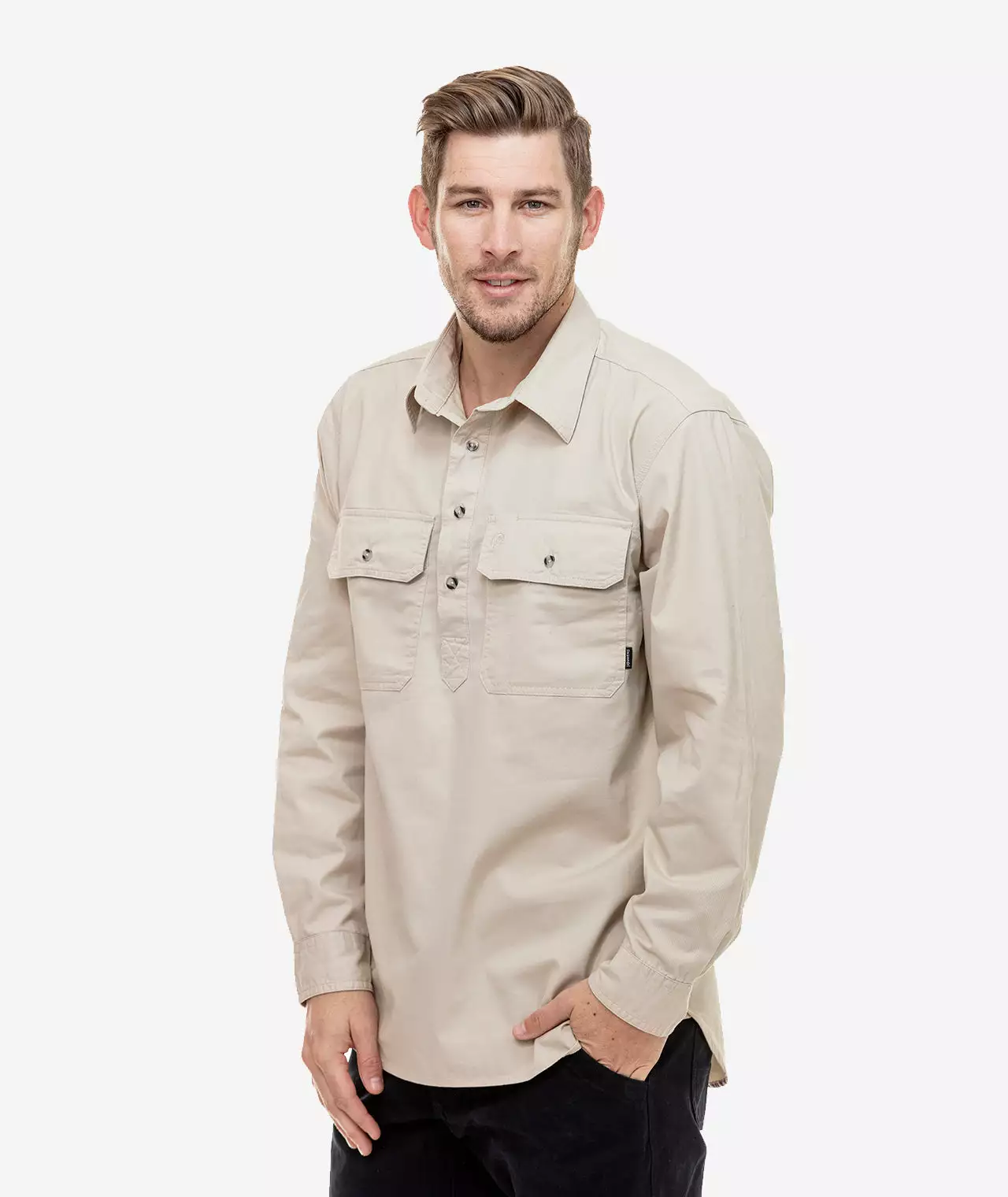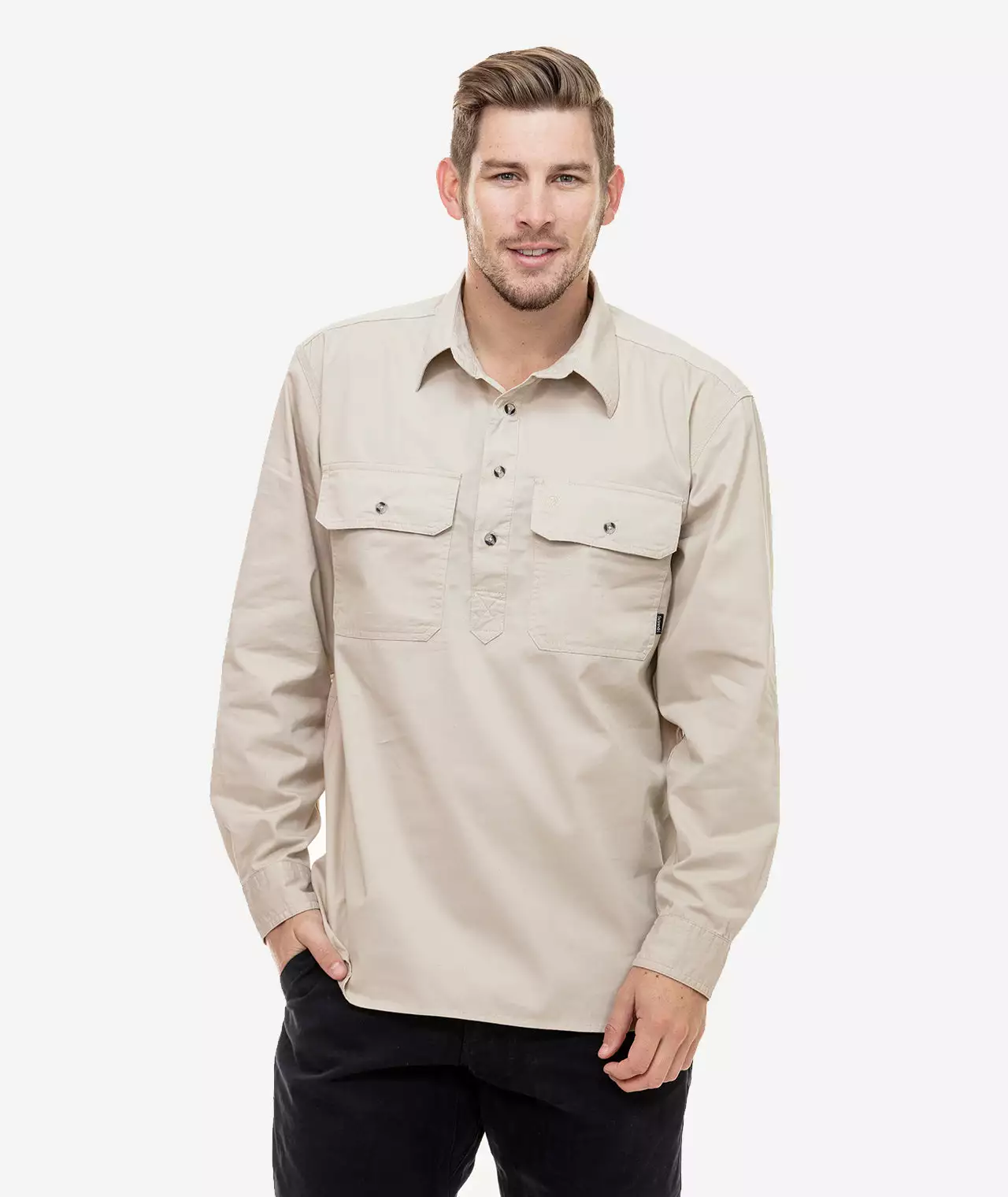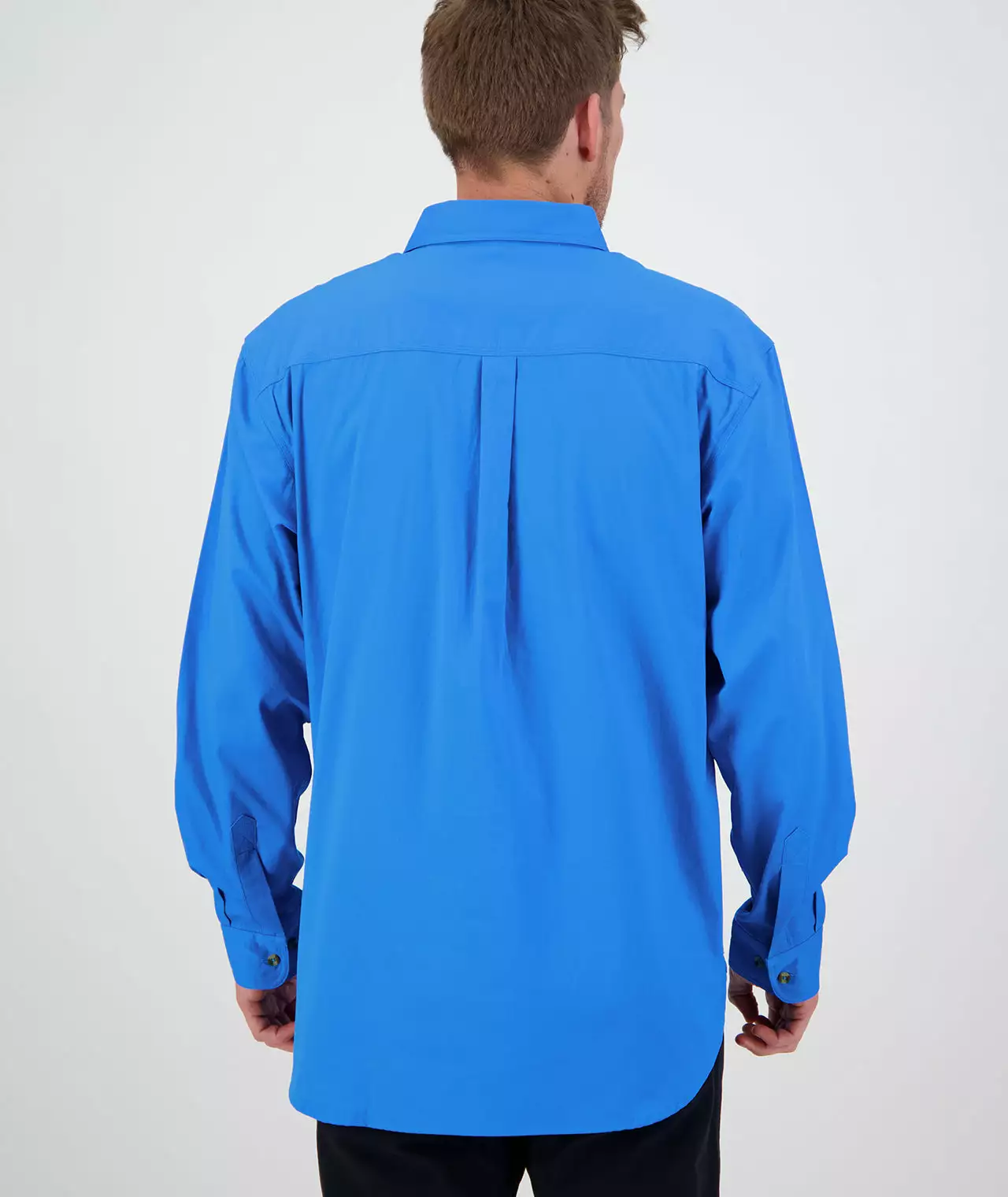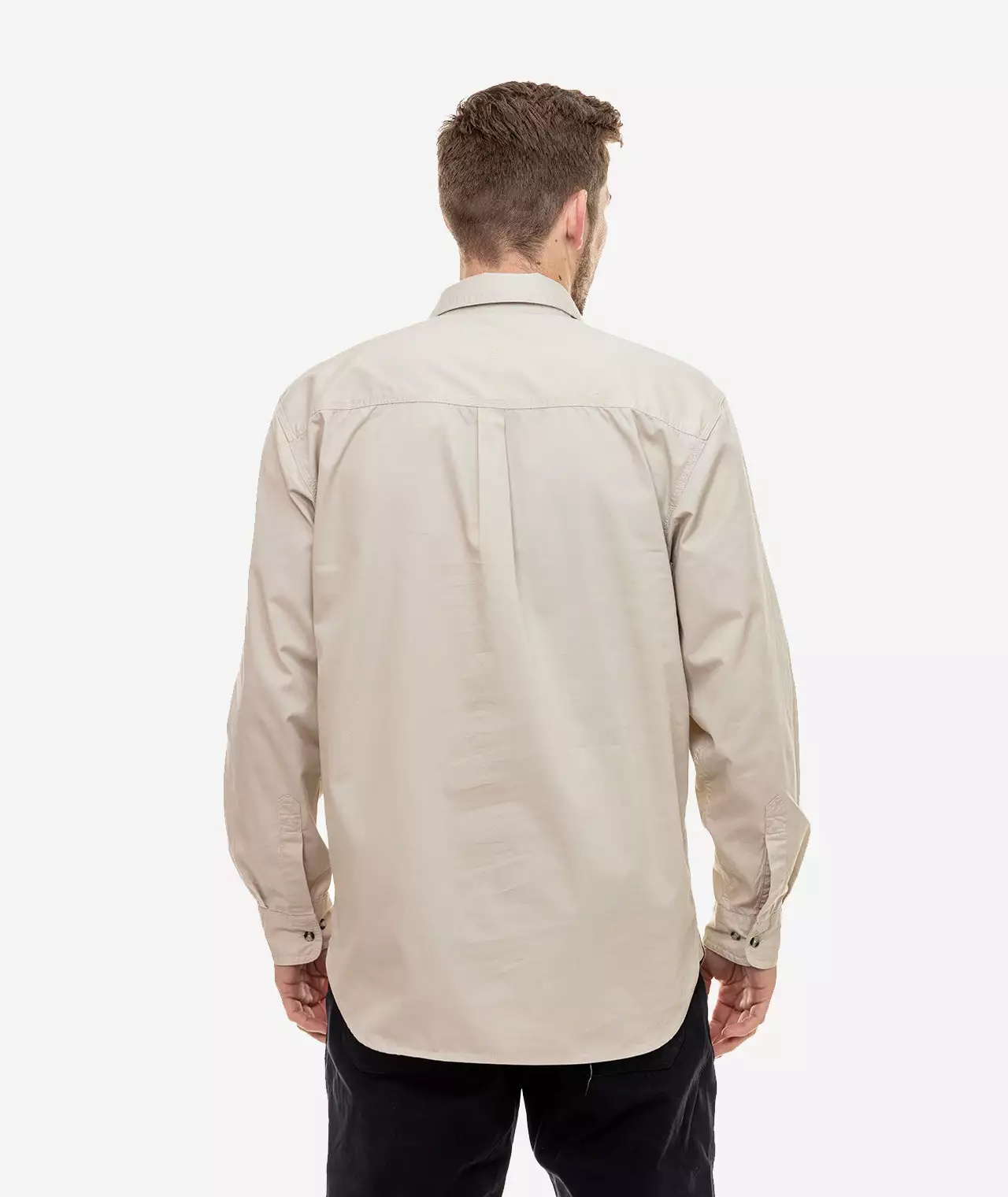 With a box pleat in the centre of the back and a relaxed fit throughout, the Bendigo Long Sleeve is built for movement. The chest sports buttons mid-way up while the cuffed sleeves feature gauntlet buttons— this shirt is designed to be worn a variety of ways. Unbutton the chest and wear the sleeves rolled for more casual looks. With a pen slot sewn into the left-hand side, this shirt is built to see you through the stages of a project, from drafting your plan to building it out in the sun.