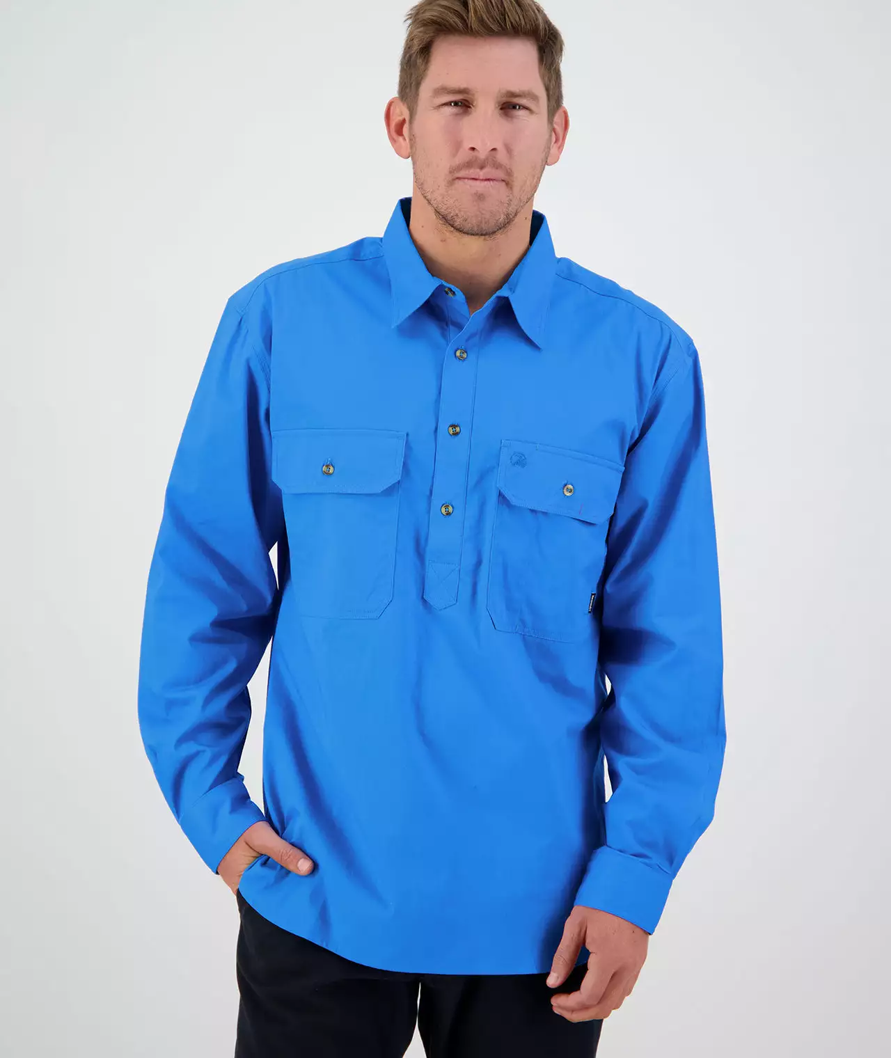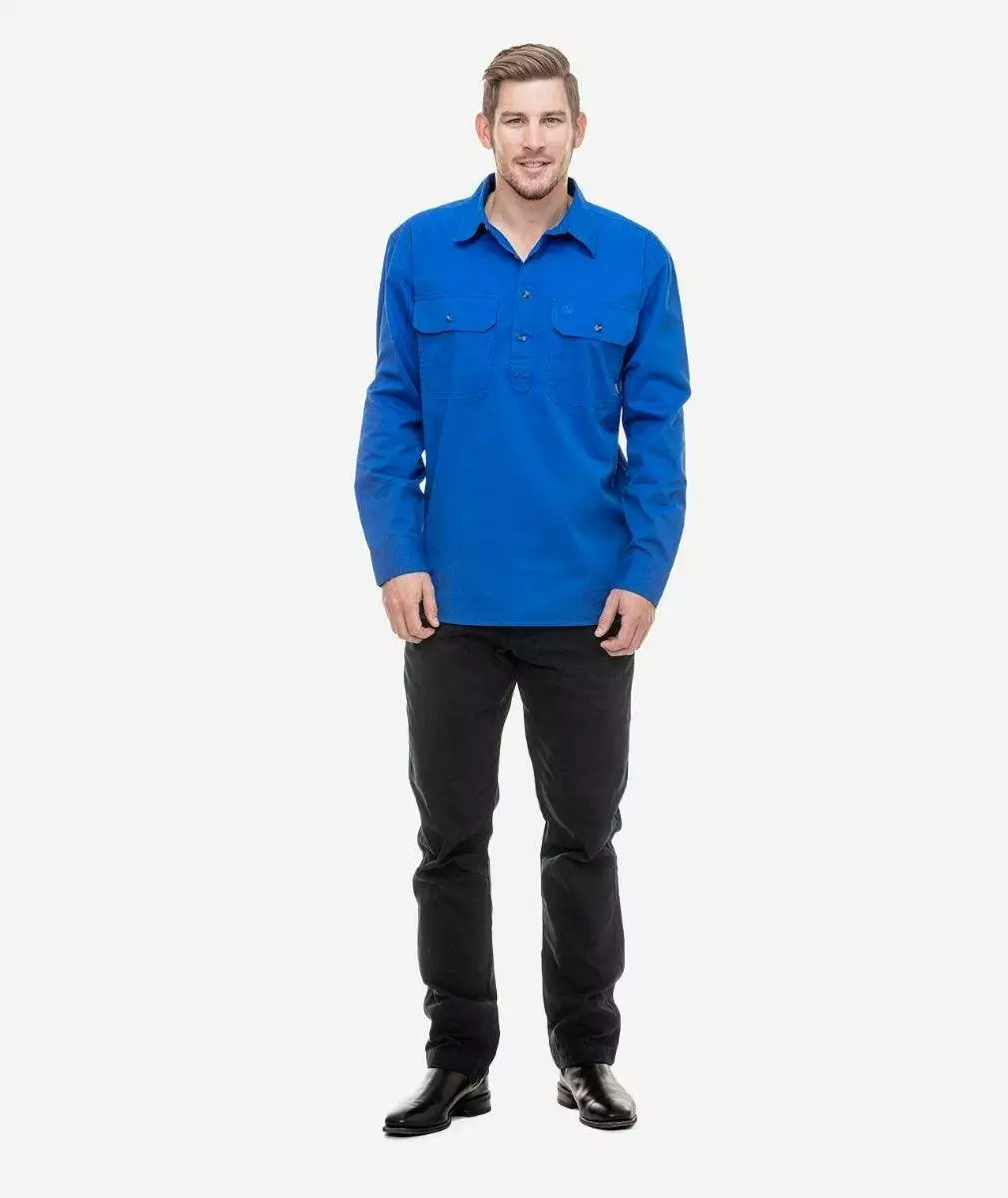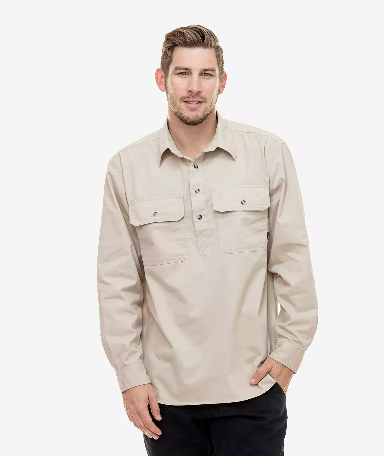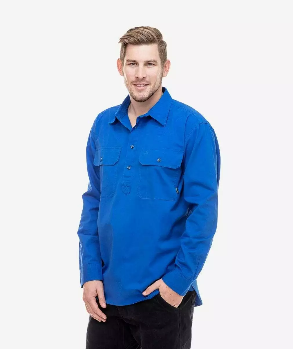 With a box pleat in the centre of the back and a relaxed fit throughout, the Bendigo Long Sleeve is built for movement. The chest sports buttons mid-way up while the cuffed sleeves feature gauntlet buttons— this shirt is designed to be worn a variety of ways. Unbutton the chest and wear the sleeves rolled for more casual looks. With a pen slot sewn into the left-hand side, this shirt is built to see you through the stages of a project, from drafting your plan to building it out in the sun.