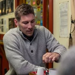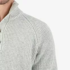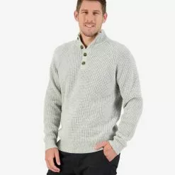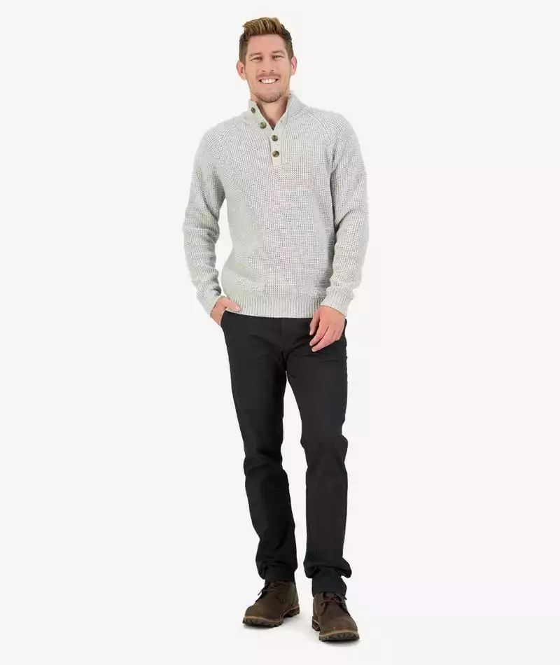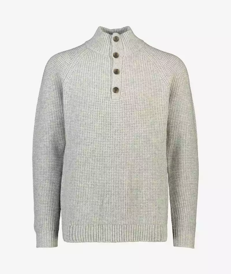 Button neck lambs wool blend jumper knitted in a heavy waffle texture. Perfect for the winter months under a jacket or as a layer on its own.