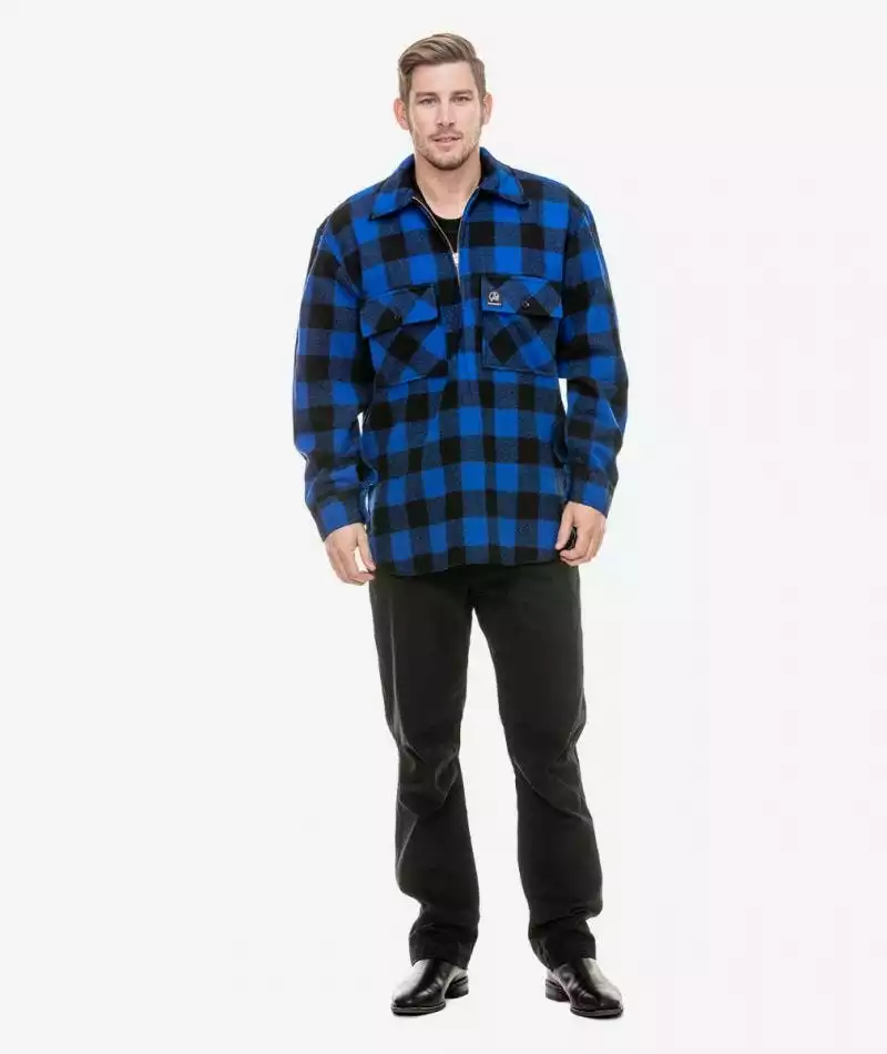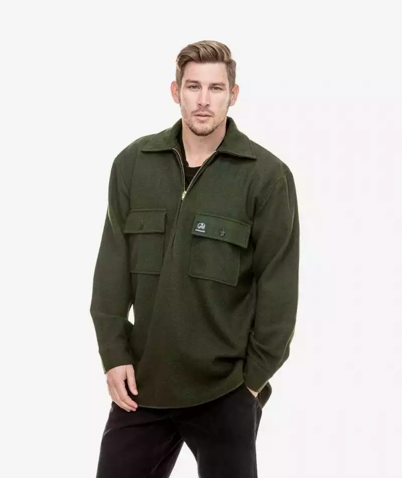 You can’t go past one of our iconic woollen shirts next time you need something warm and stylish to wear. Made with 100% wool, they are perfect for any outdoor or indoor use. The durable design of this product incorporates a pullover style, buttoned cuffs, and two large buttoned chest pockets. The zip-up front allows you to control your body temperature by opening or closing the zip, and the stylish design will hold up in the best of company.